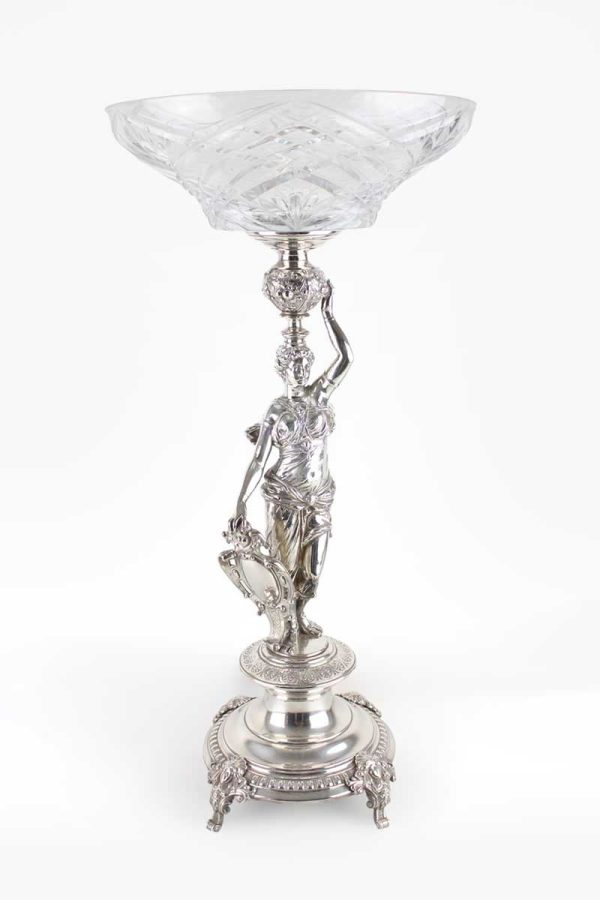 Silver Epergne Centrepiece Classical Female Figure Holding Shield & Cut Glass Dish