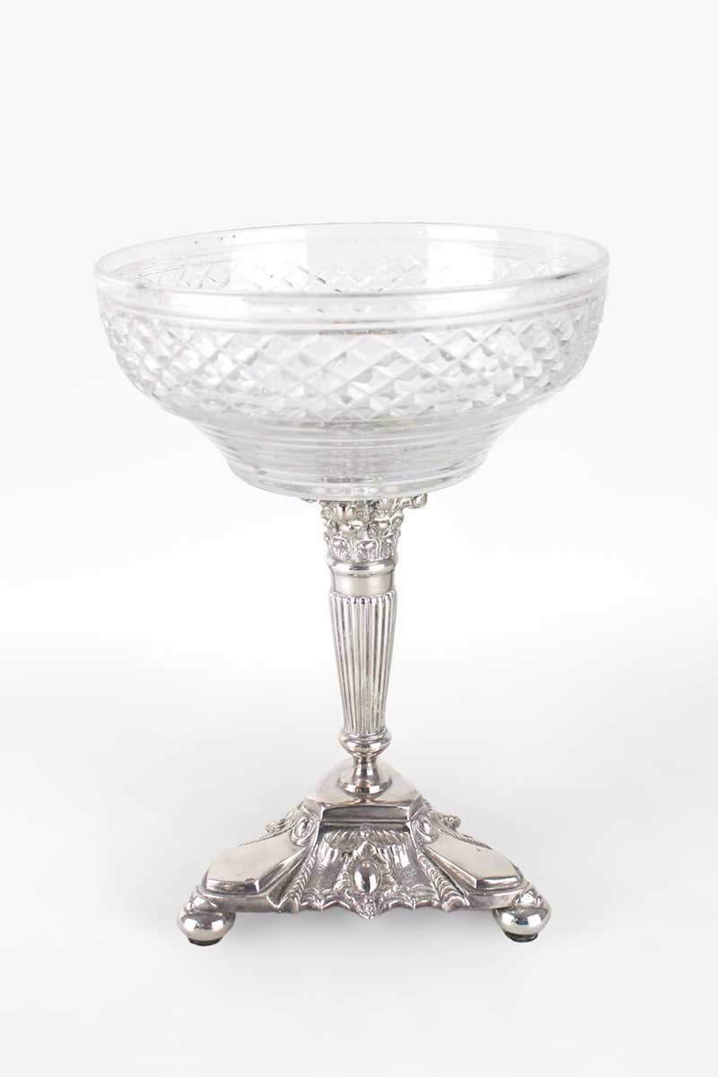 Silver Epergne Centrepiece with Reeded Column & Moulded Triangular Base with Circular Cut Glass Bowl
