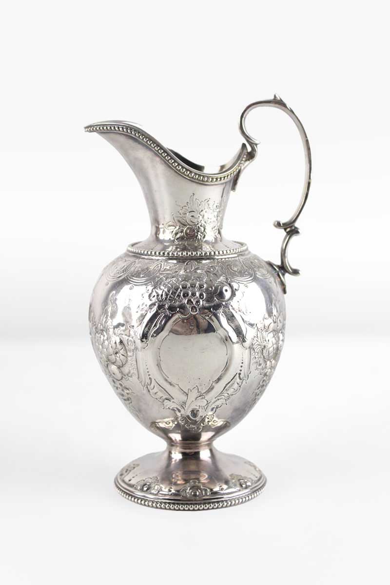 Silver Milk Jug Bulbous Body Beautifully Embossed with Fruit & Flowers