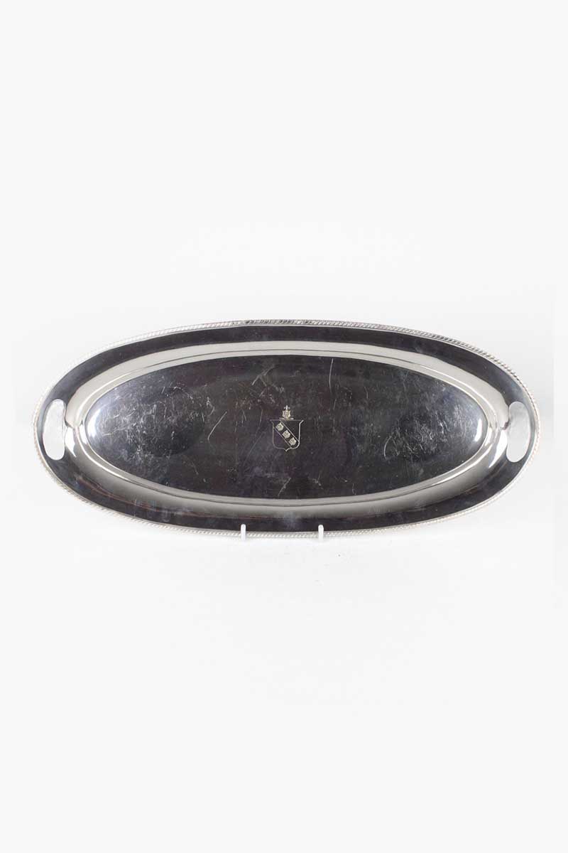 Silver Plated Plain Salmon Serving Tray with Ornate Edge and Central Crest