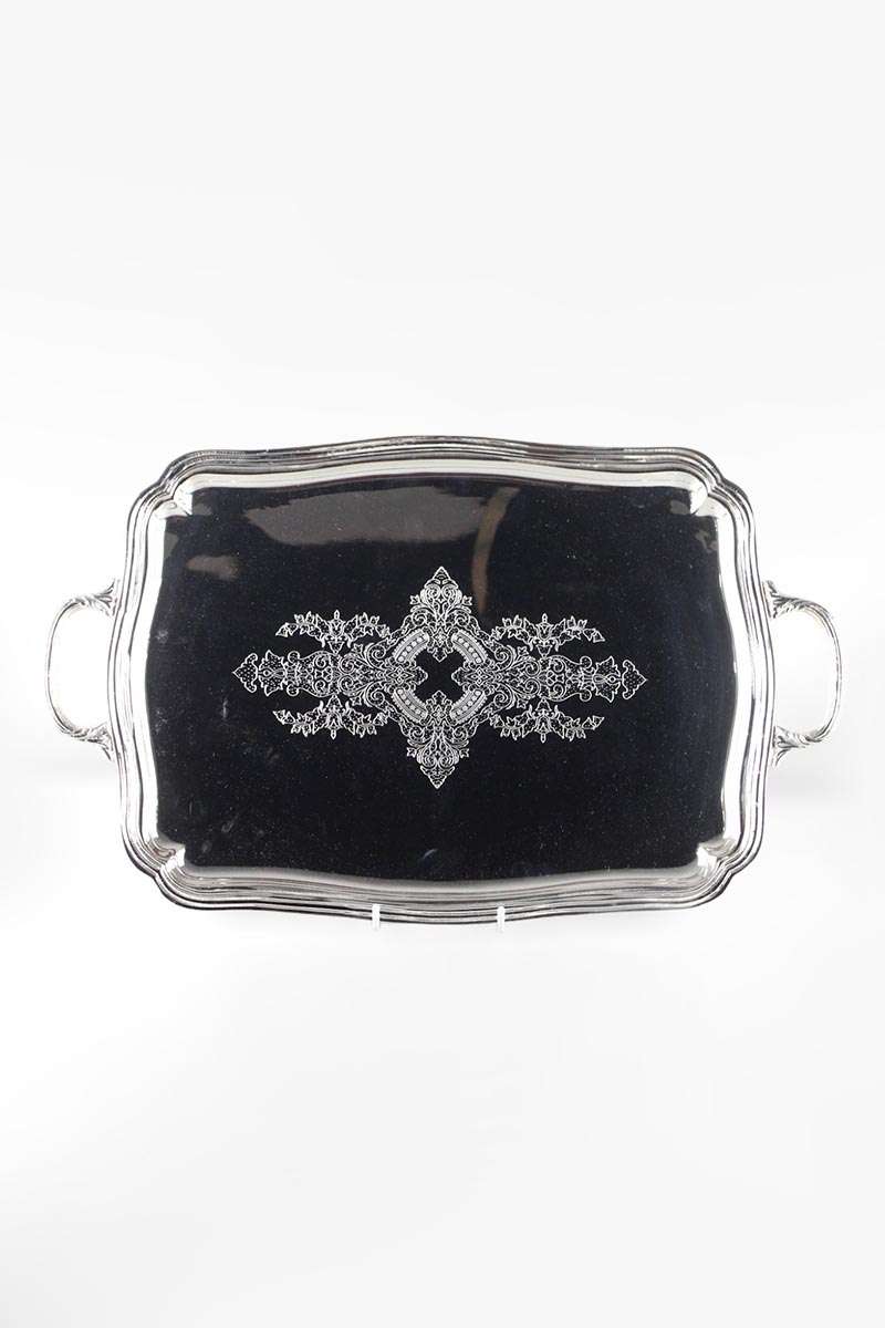 Silver Plated Rectangular 2 Handled Tray with Shaped Edge and Central Engraving
