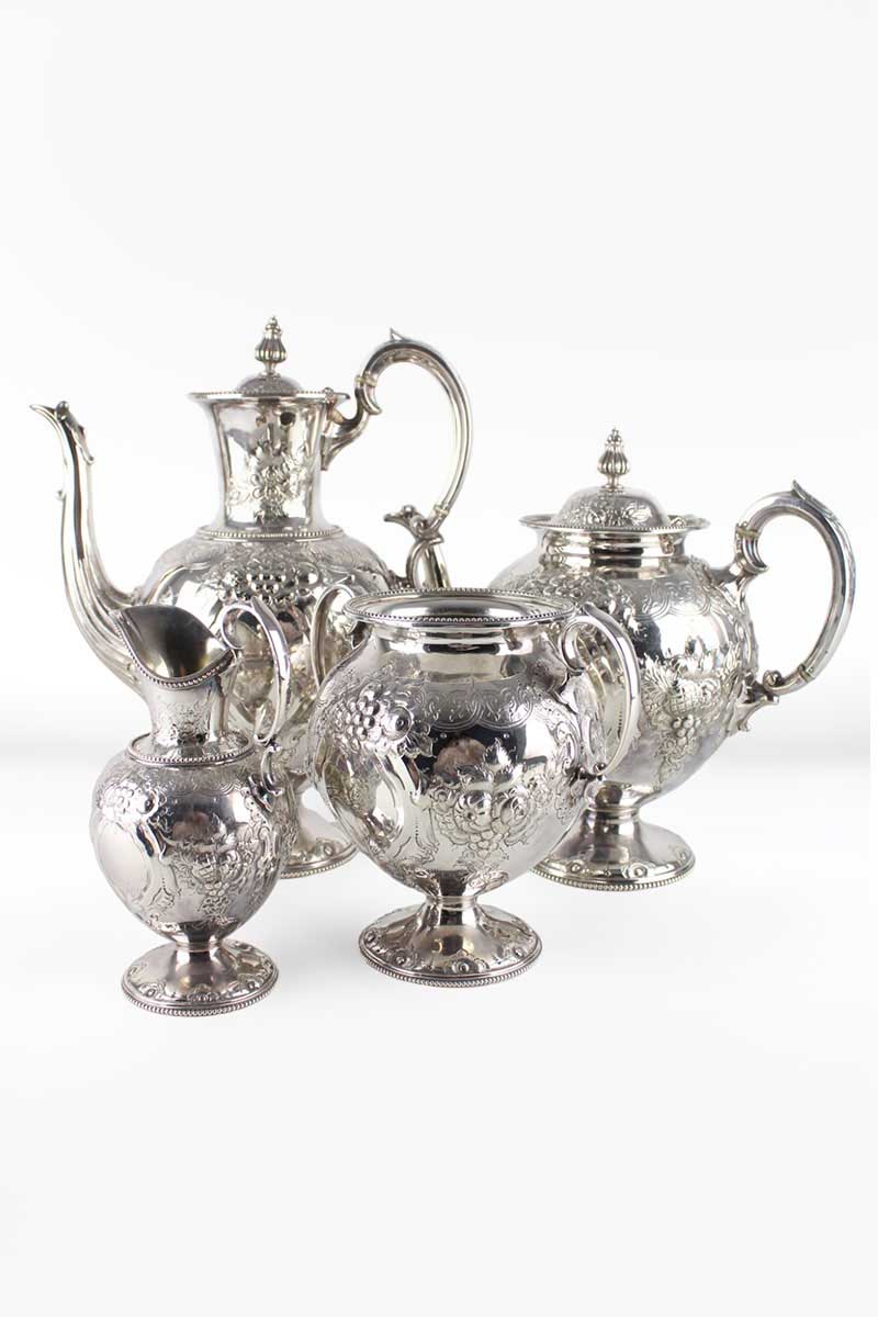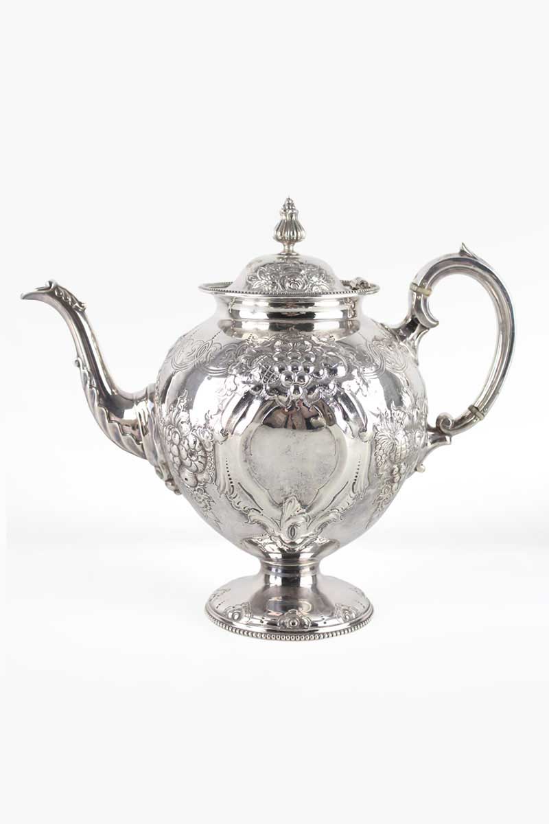 Silver Teapot Bulbous Body Beautifully Embossed with Fruit & Flowers
