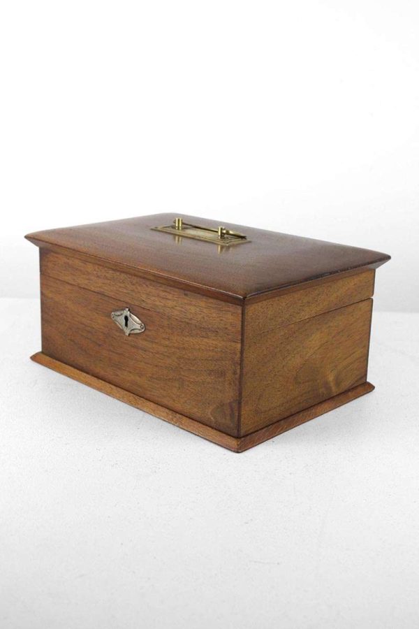 Simple Art Nouveau Elm Wood Box with Brass Handle
