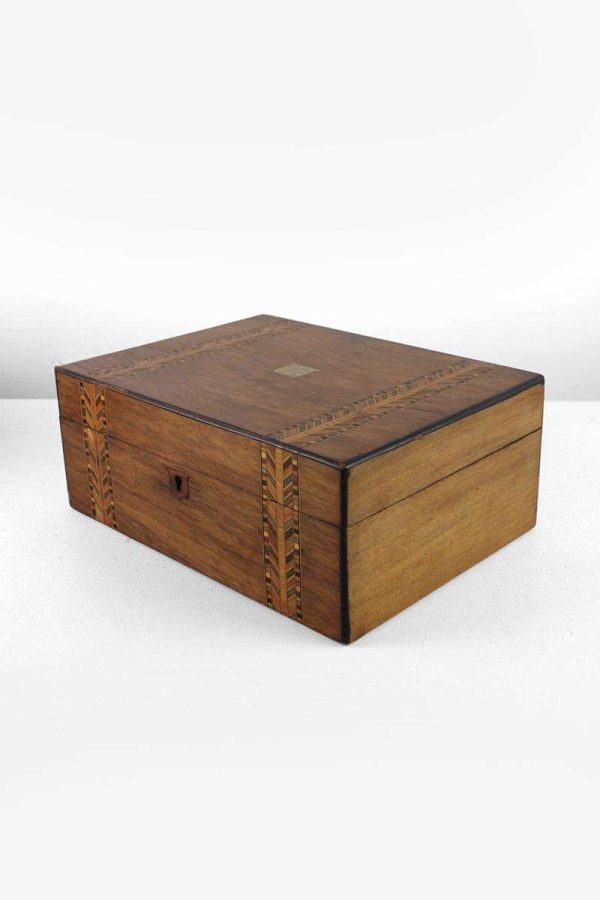 Simple Wooden Marquetry Banded Box with Round Central Medallion