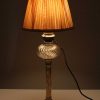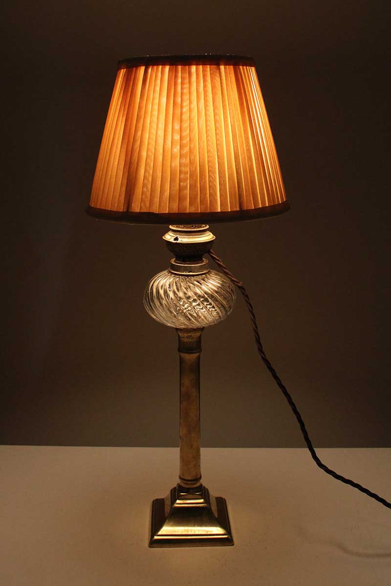 Small Brass and Glass Converted Oil Lamp Table Lamp with Cream Pleated Shade