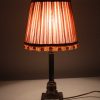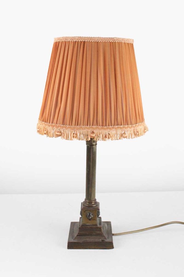 Small Brass Column Table Lamp with Peach Oval Pleated Chiffon Shade