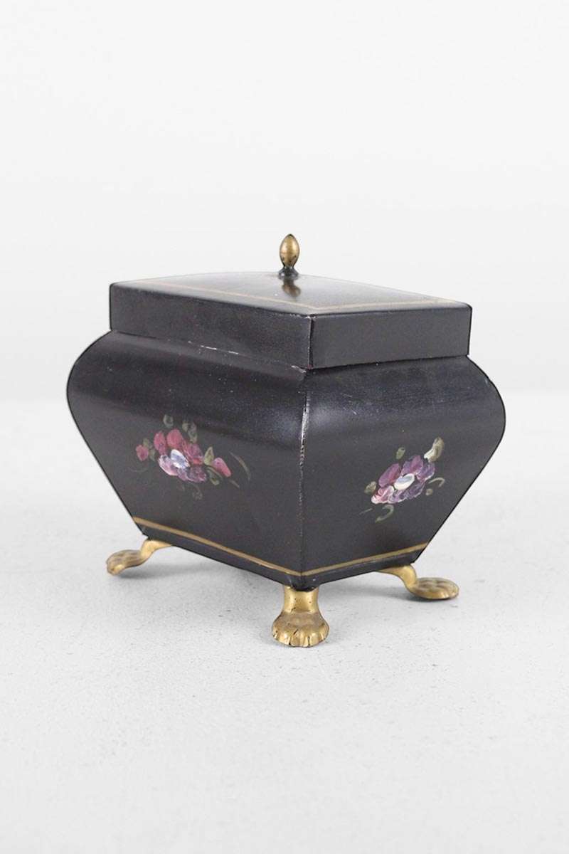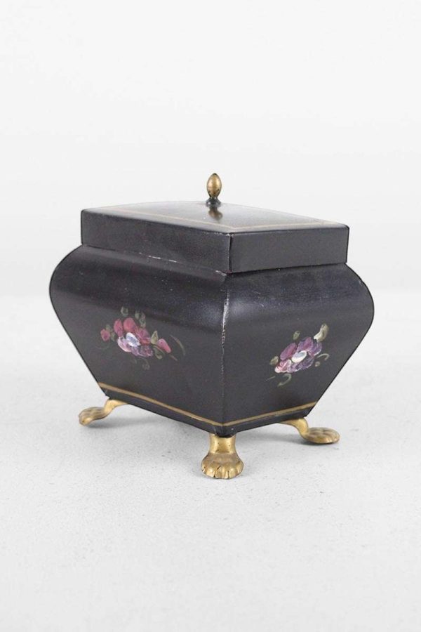 Small Decorative Toleware Box / Caddy with Gilt Paw Feet