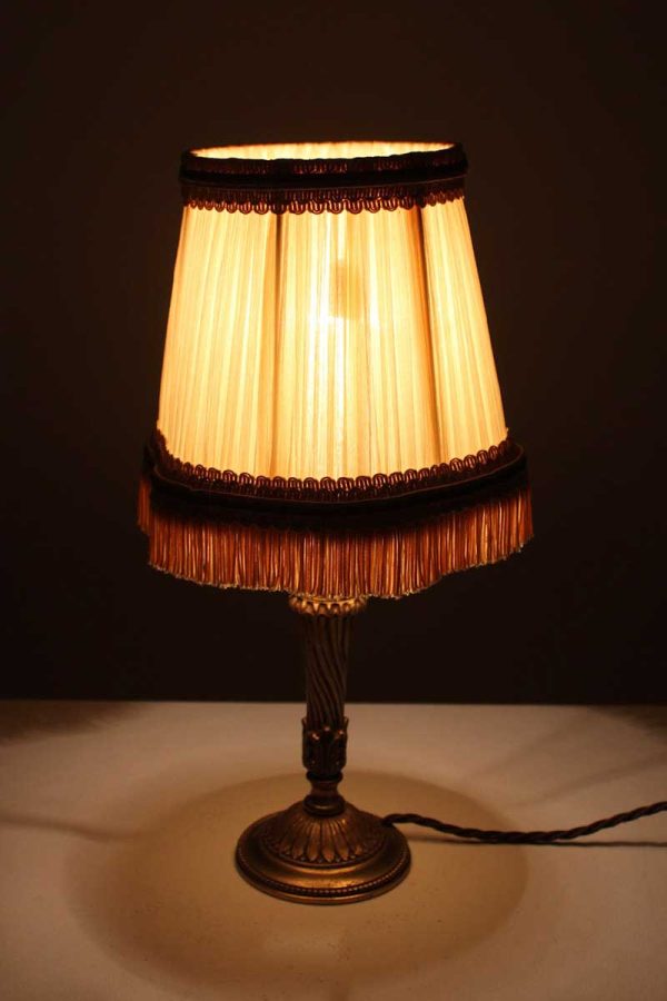 Small Gilt Metal Table Lamp with Cream Chiffon Boudoir Shade