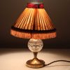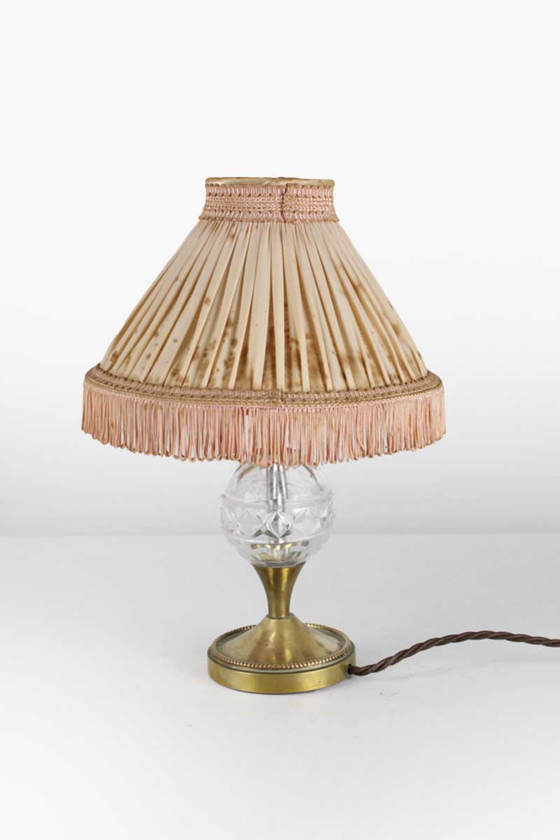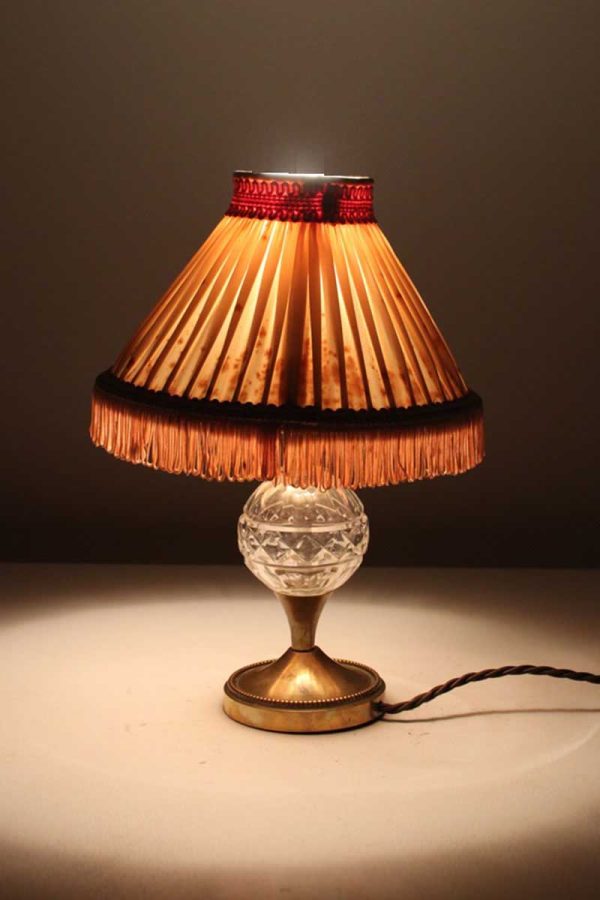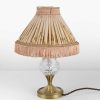 Small Glass and Brass Boudoir Table Lamp with Pink Pleated Fringed Shade