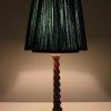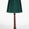 Small Wooden Barley Twist Table Lamp with Floral Carving and Green Fluted Square Pleat Shade quantity