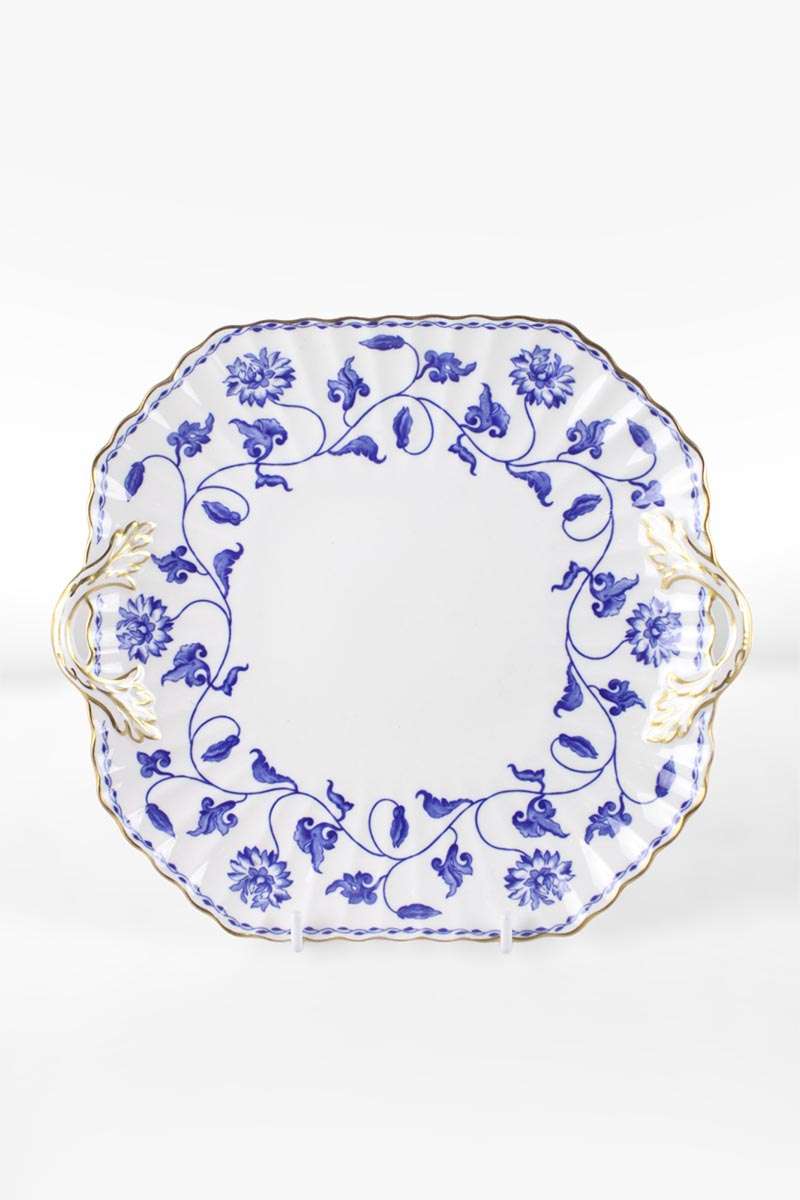 Spode Colonel Blue and White Floral 2 Handled Square Cake Plate