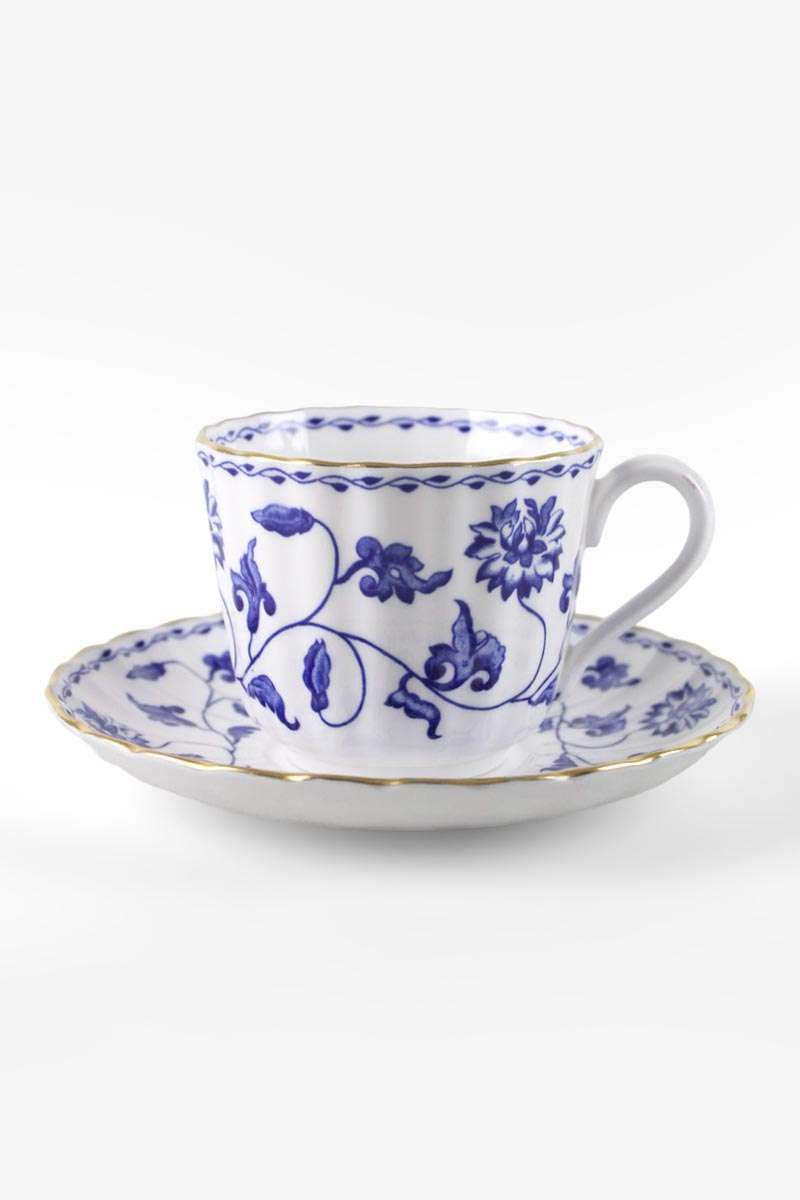 Spode Colonel Blue and White Floral Tea Saucer with Gold Rim quantity