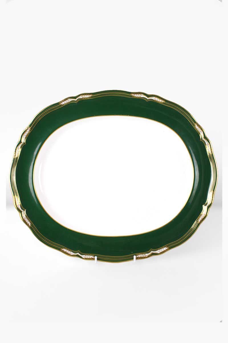 Spode Harrogate Large Meat Plate with Wide Dark Green Border & Gold Rim