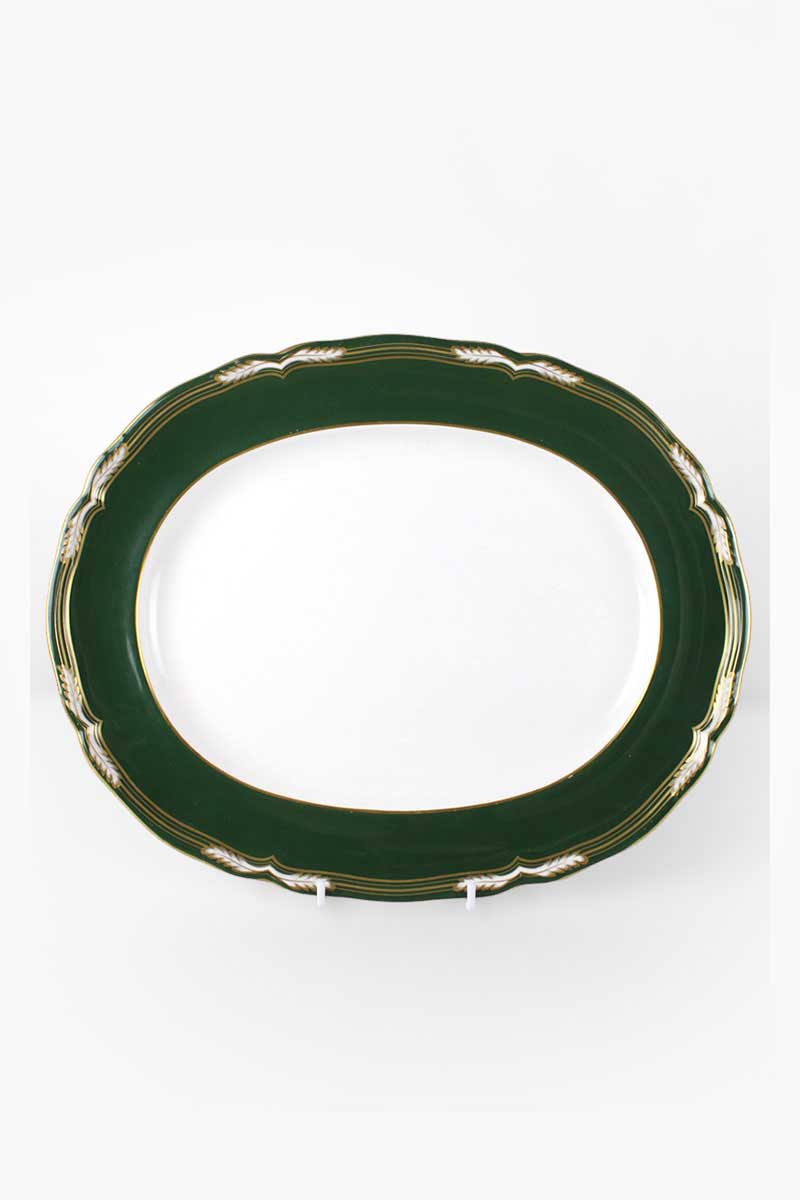 Spode Harrogate Medium Meat Plate with Wide Dark Green Border & Gold Rim