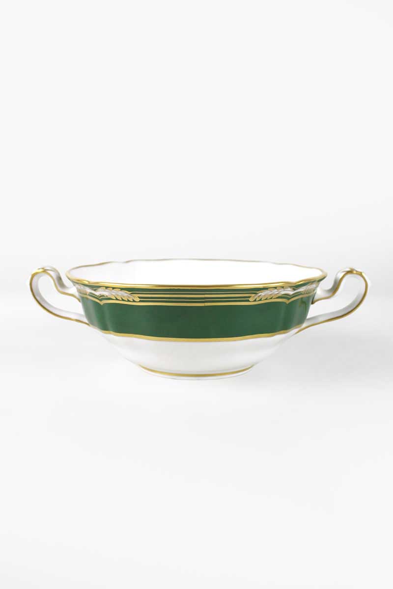 Spode Harrogate Soup Cup / Bowl with Wide Dark Green Border & Gold Rim with 2 Handles