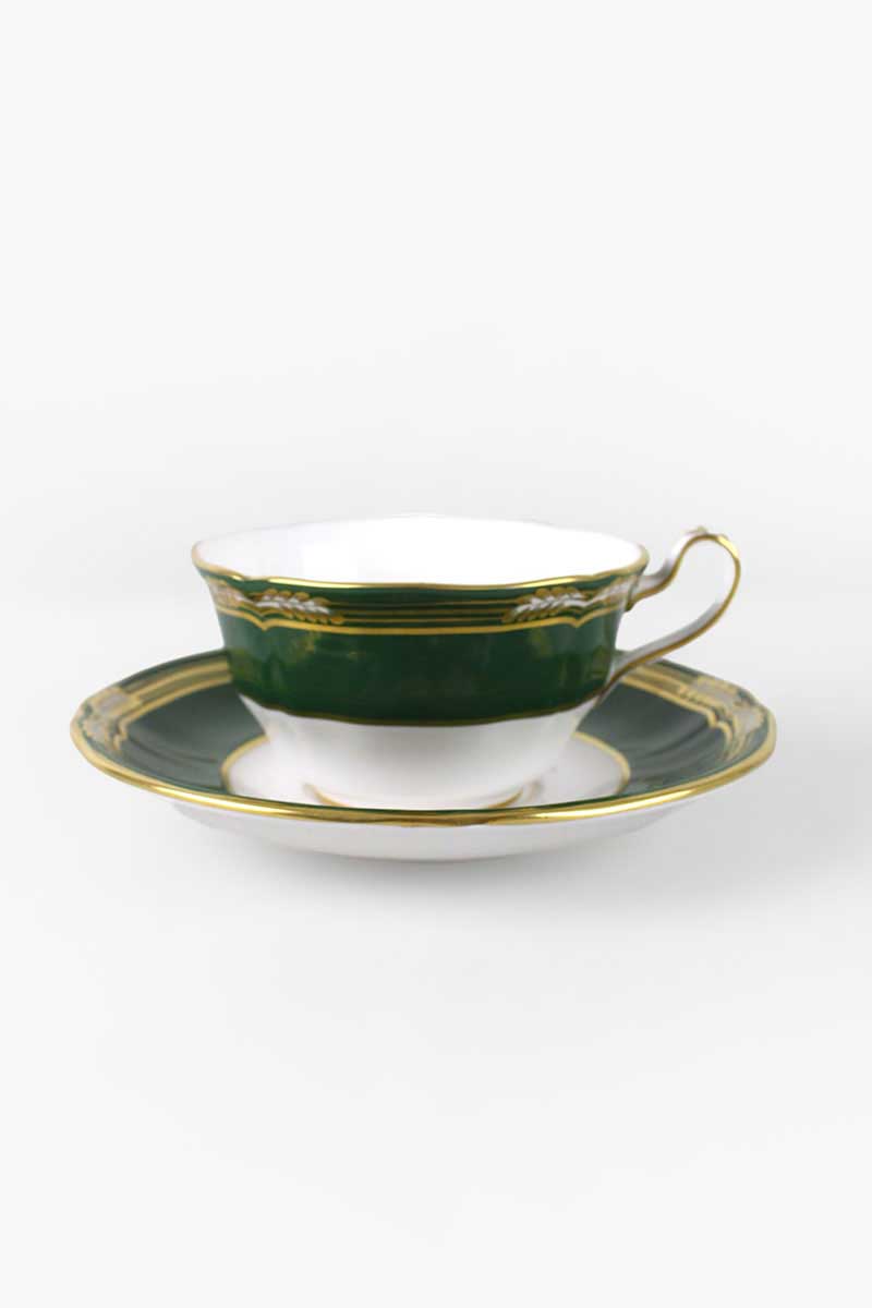 Spode Harrogate Tea Cup with Wide Dark Green Border & Gold Rim
