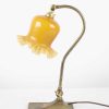 Swan Necked Brass Desk Lamp with Orange Glass Shade quantity