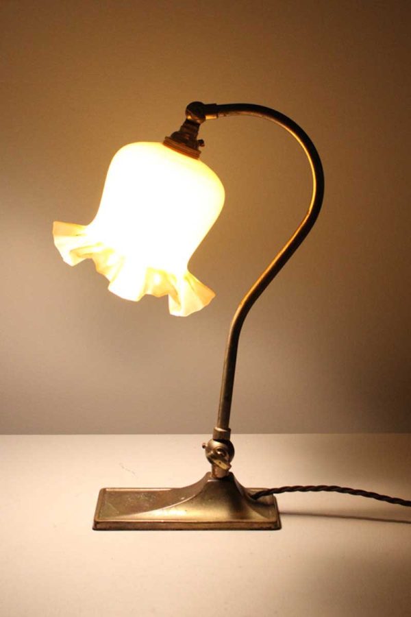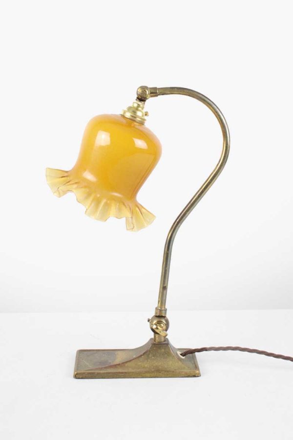 Swan Necked Brass Desk Lamp with Orange Glass Shade