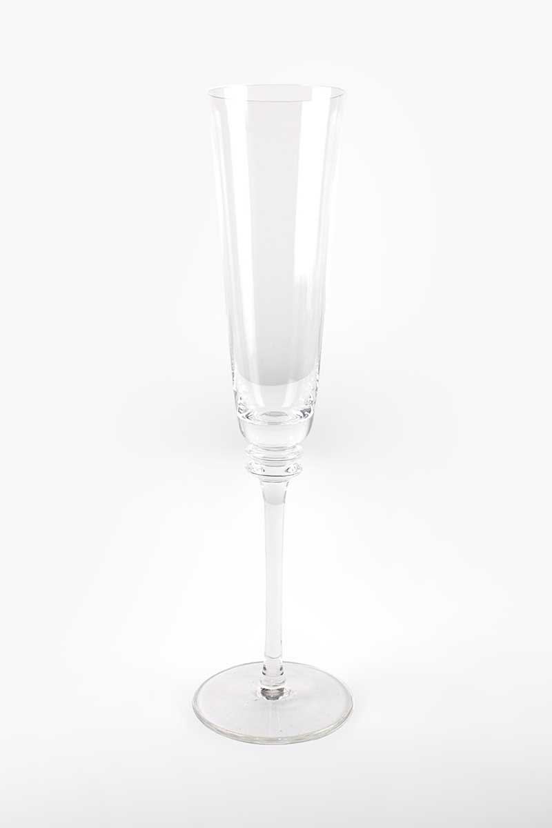 Tall Clear Glass Champagne Flute with Flattened Knop Stem
