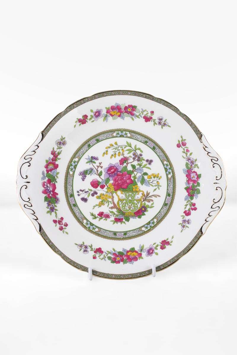 Tree Of Kashmir Pattern 2 Handled Cake Plate with Red and Grey Floral Pattern