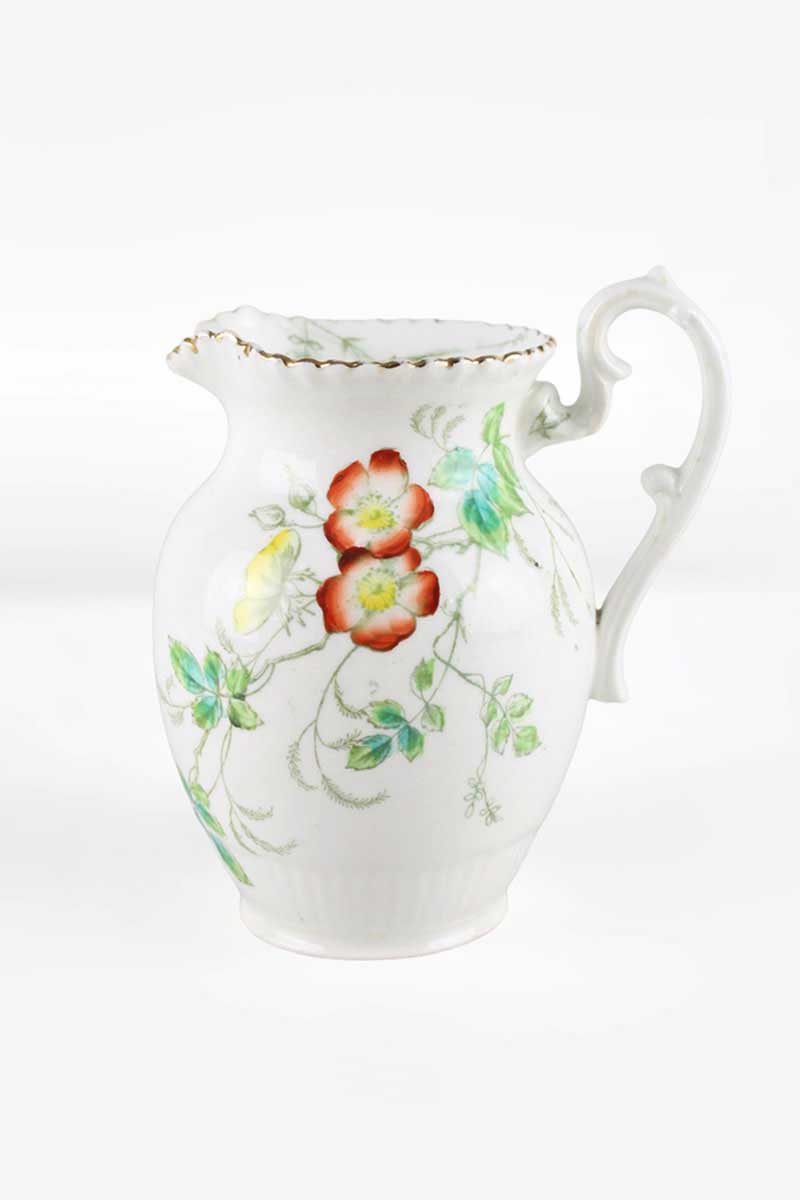 Victorian Hand Painted Milk Jug Decorated with Leaves and Poppies