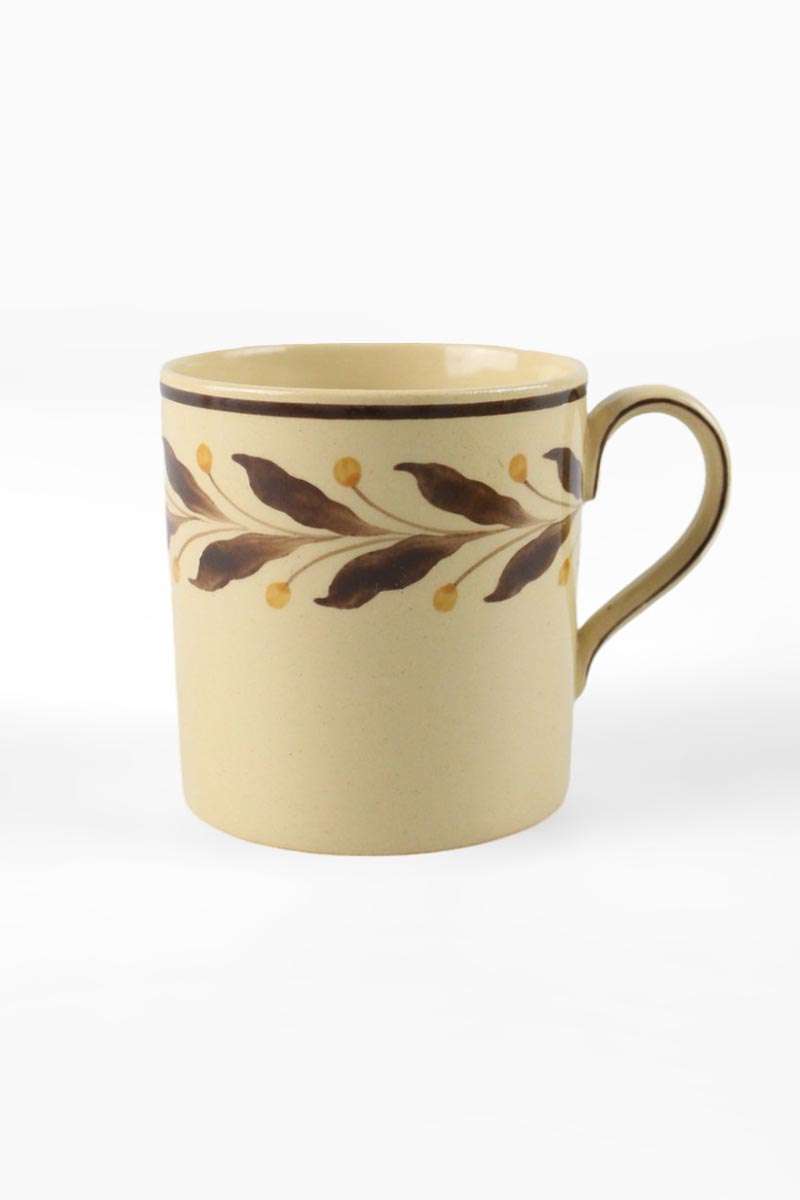Wedgwood Glazed Earthenware Coffee Cup with Brown Leaf Border on Beige Ground quantity