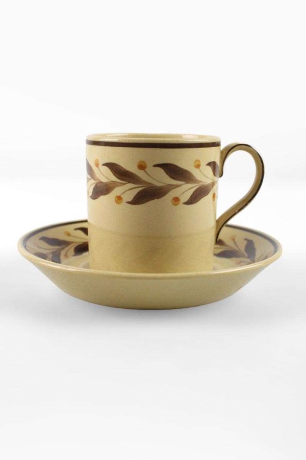 Wedgwood Glazed Earthenware Coffee Cup with Brown Leaf Border on Beige Ground