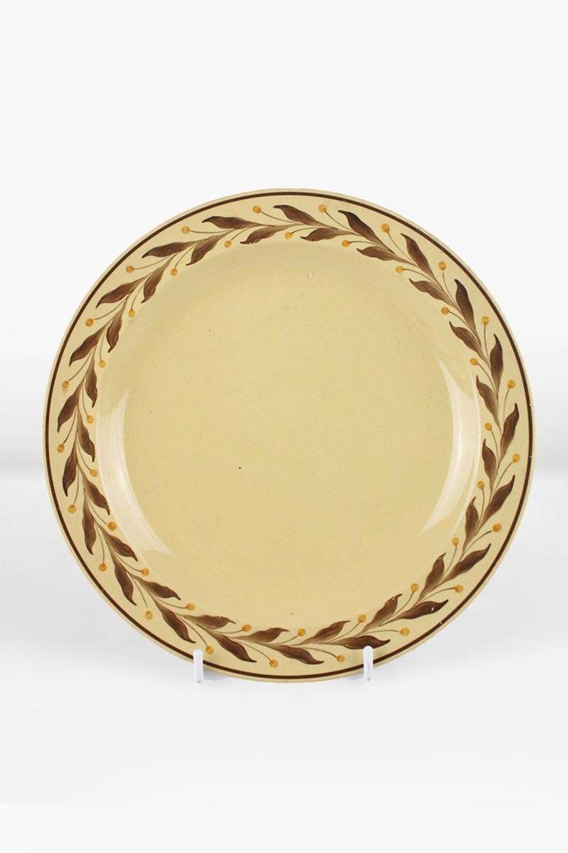 Wedgwood Glazed Earthenware Dinner Plate with Brown Leaf Border on Beige Ground