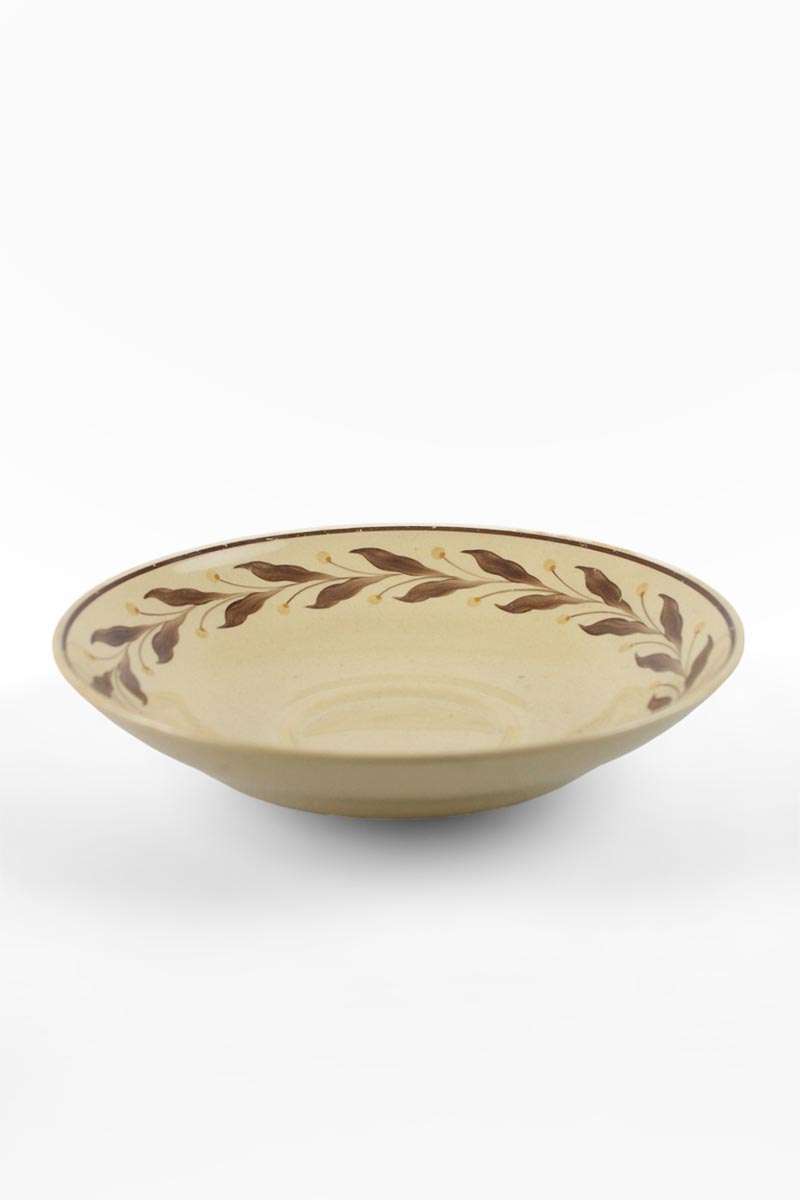 Wedgwood Glazed Earthenware Large Saucer with Brown Leaf Border on Beige Ground