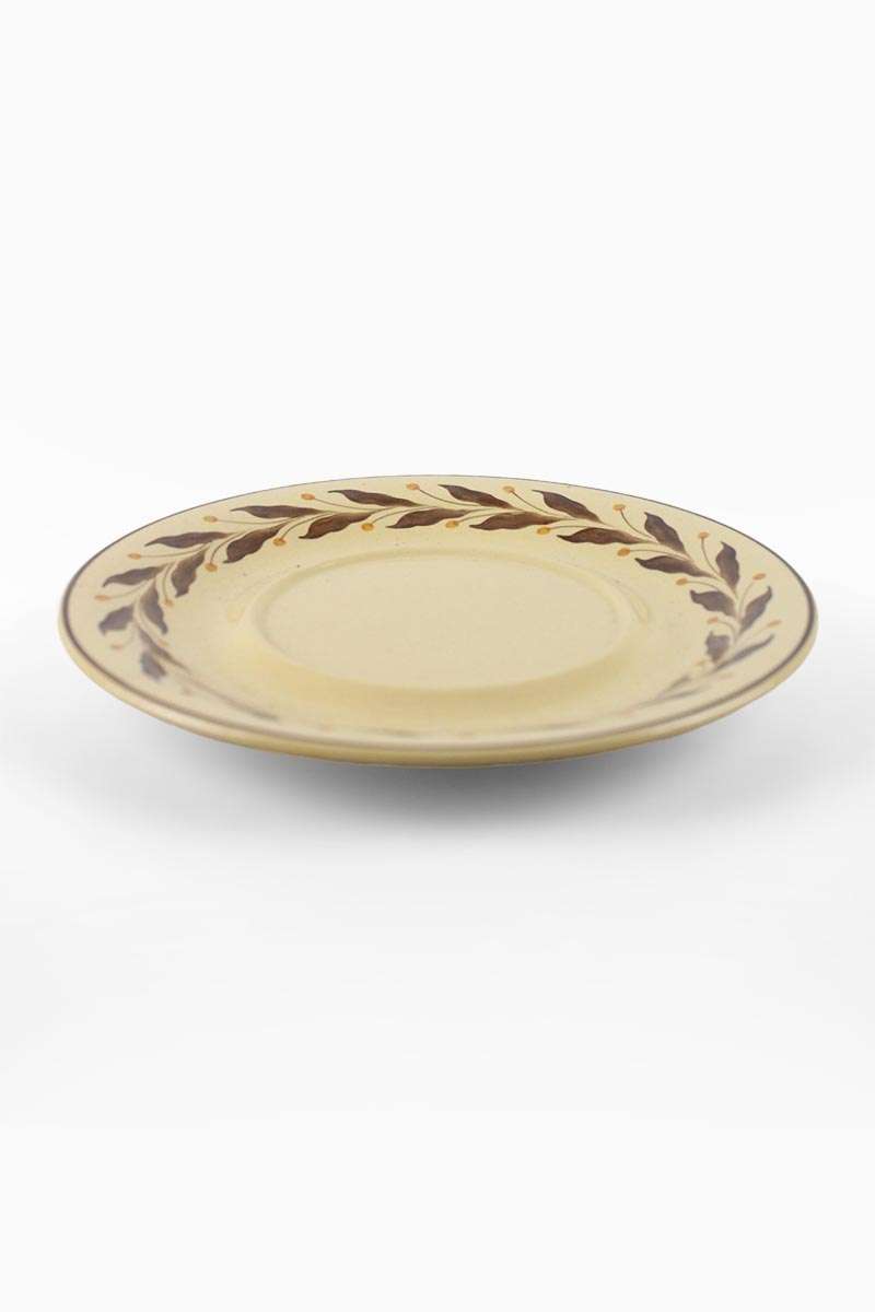 Wedgwood Glazed Earthenware Round Plate / Stand with Brown Leaf Border on Beige Ground