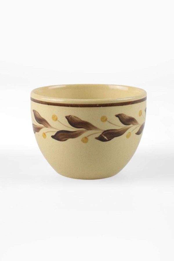 Wedgwood Glazed Earthenware Small Condiment Bowl with Brown Leaf Border on Beige Ground quantity