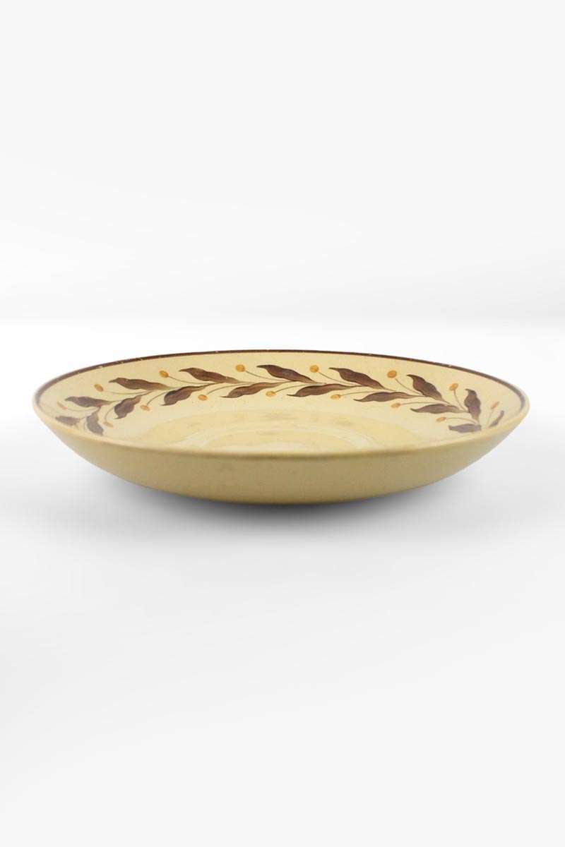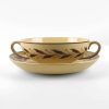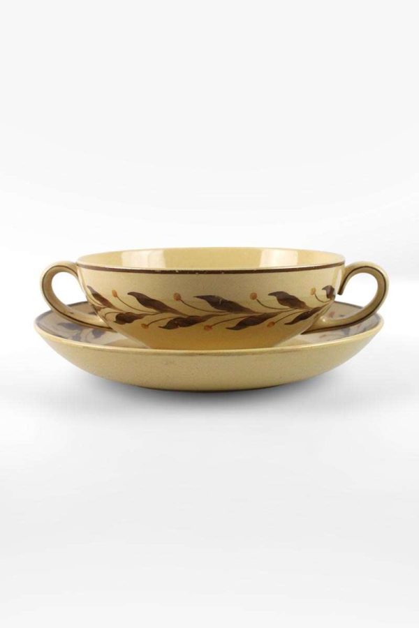 Wedgwood Glazed Earthenware Soup Cup Saucer with Brown Leaf Border on Beige Ground
