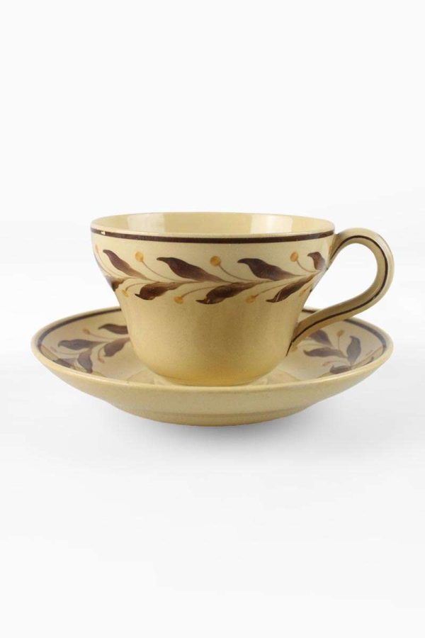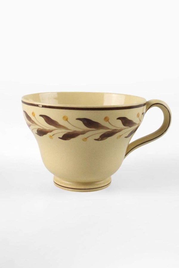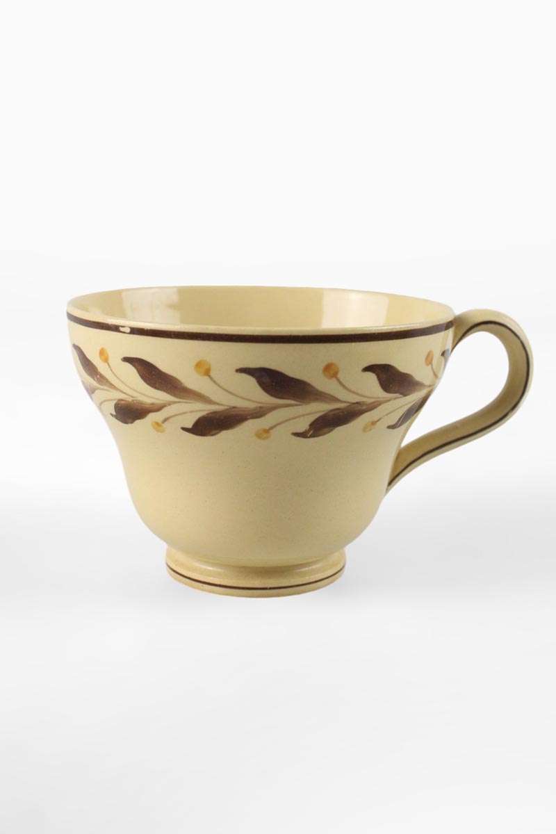Wedgwood Glazed Earthenware Tea Cup with Brown Leaf Border on Beige Ground