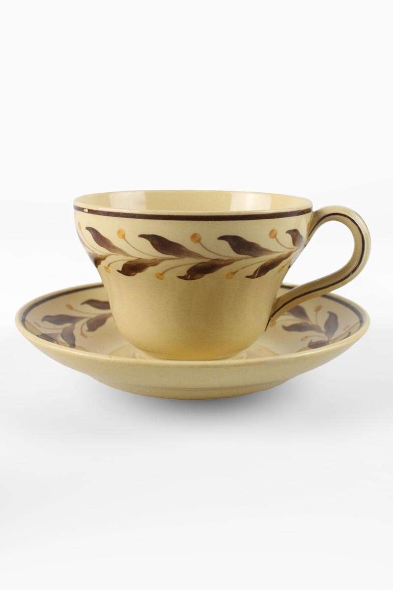 Wedgwood Glazed Earthenware Tea Saucer with Brown Leaf Border on Beige Ground quantity