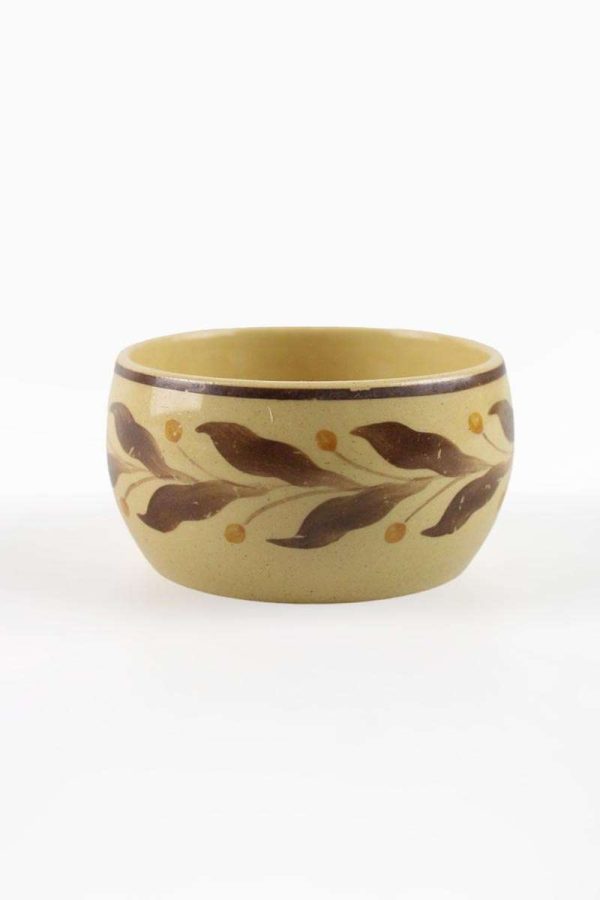 Wedgwood Glazed Earthenware Very Small Bowl with Brown Leaf Border on Beige Ground
