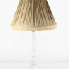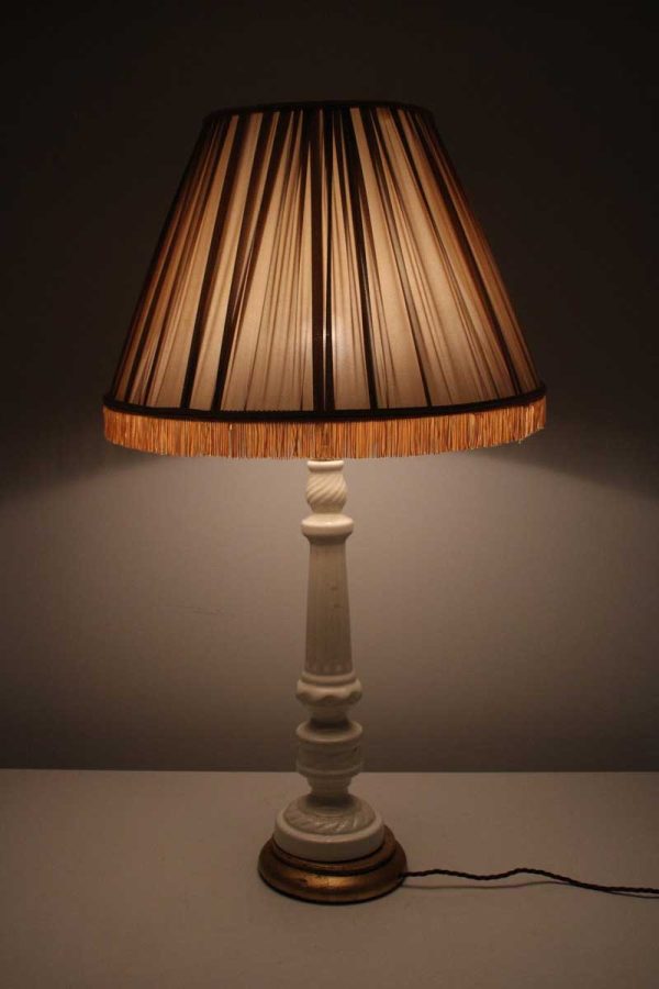 White Ceramic Column Lamp with Gold Pleated Fringed Shade