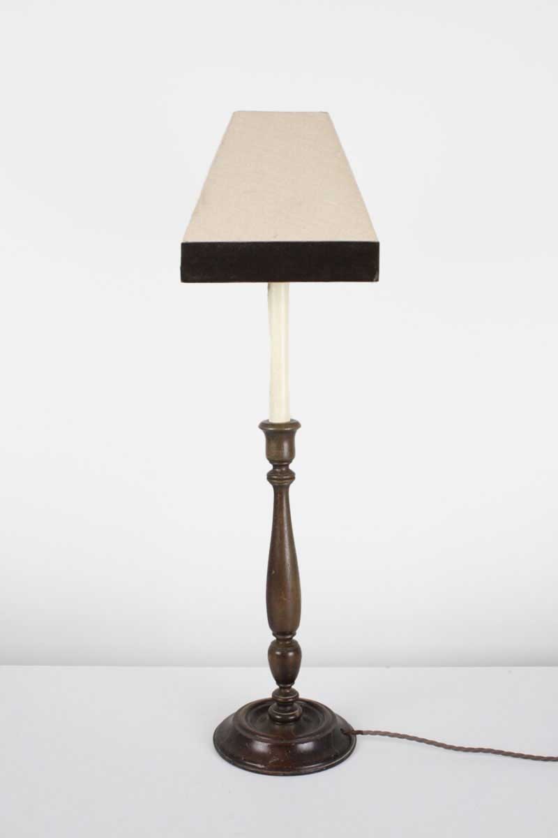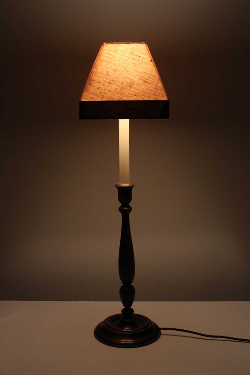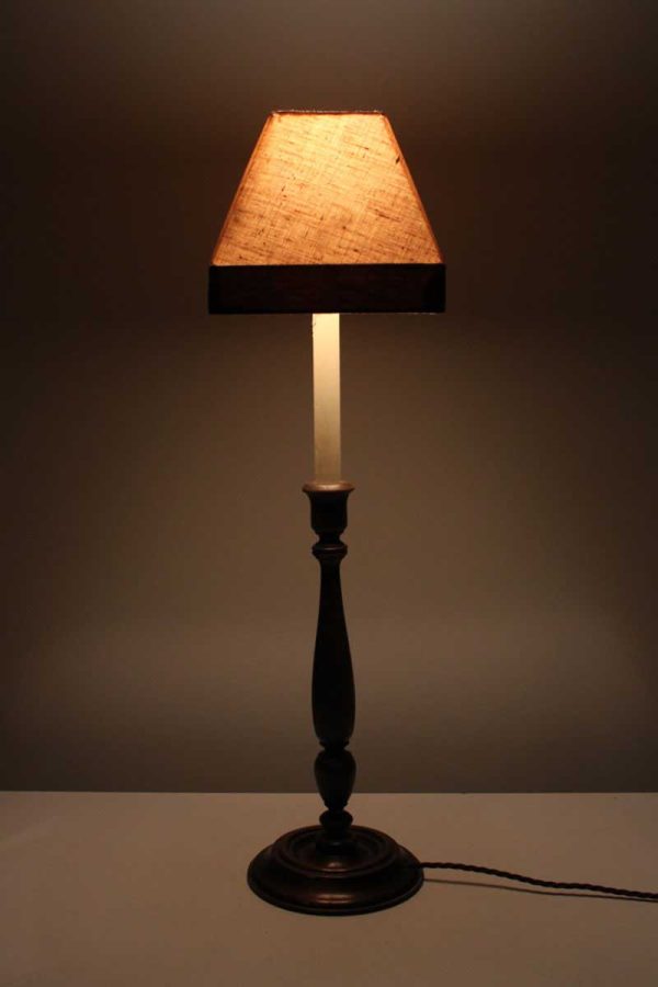 Wooden Candlestick Table Lamp with Small Square Canvas Table Lamp with Brown Trim