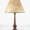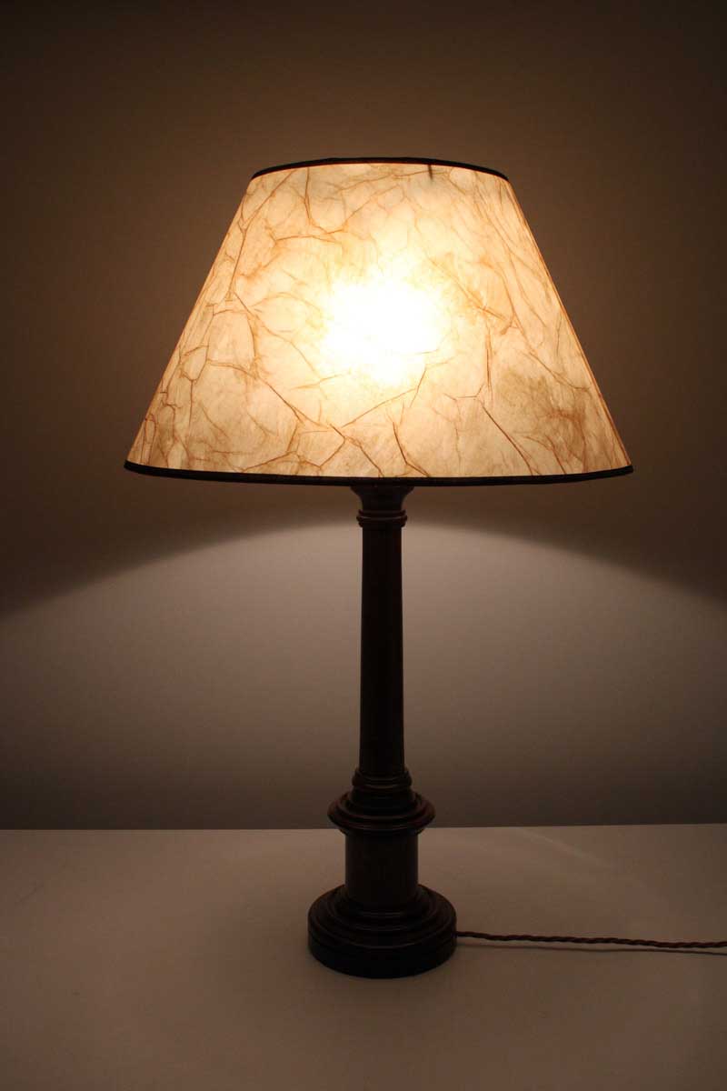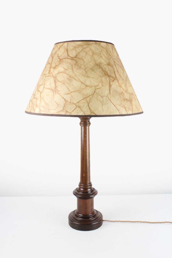 Wooden Column Table Lamp with Veined Empire Parchment Shade and Brown Trim