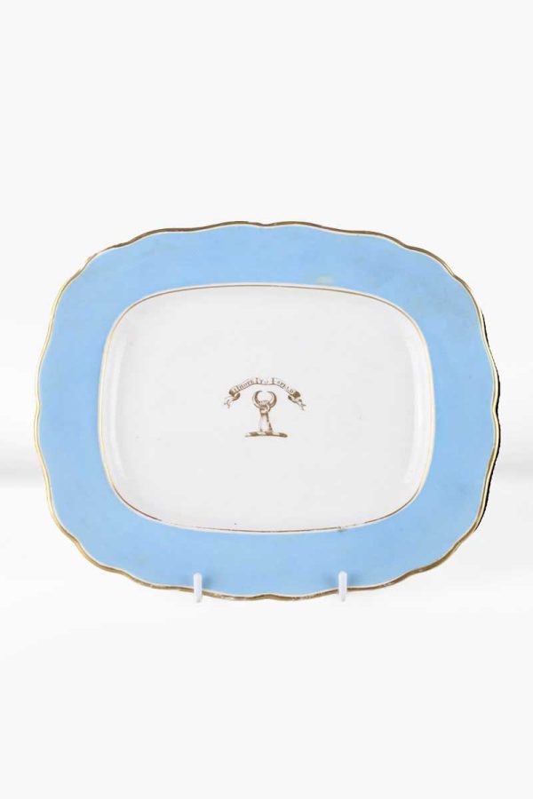 Worcester Plain Blue Border & Gilt Rim Curved Rectangular Plate (Clan Cathcart Crest & Motto)