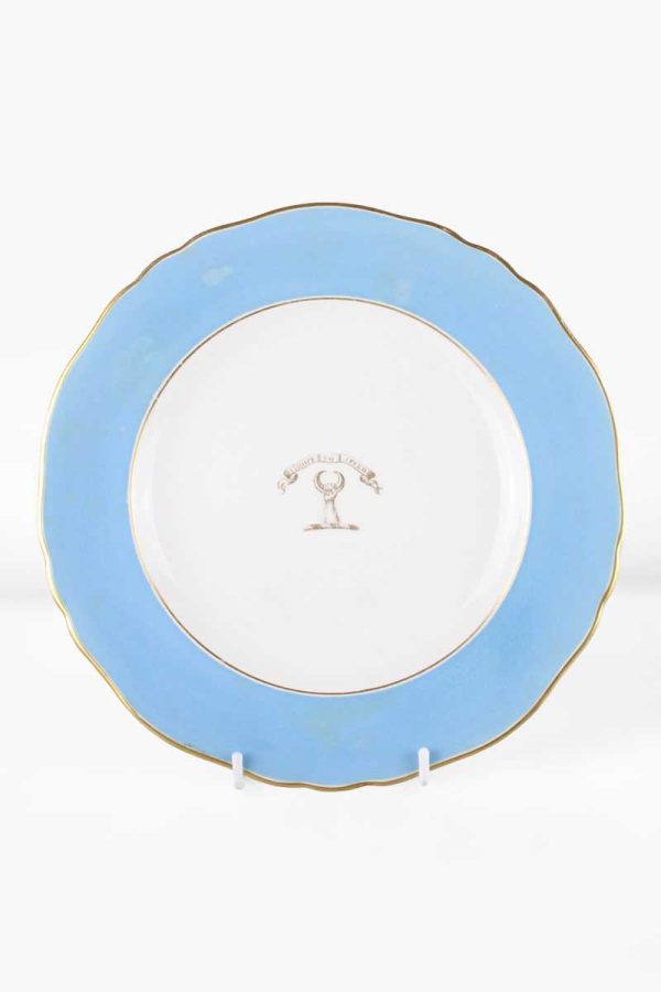 Worcester Plain Blue Border & Gilt Rim Dinner Plate (Clan Cathcart Crest & Motto)