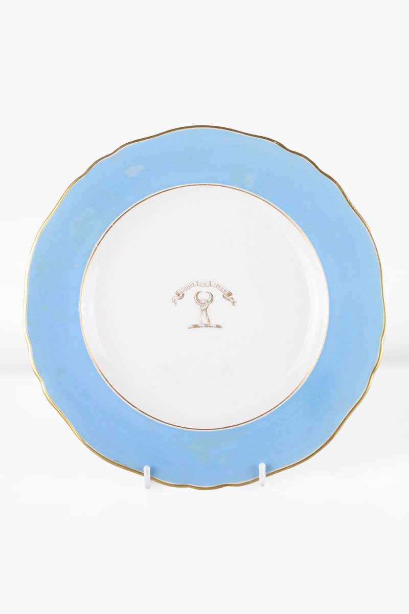 Worcester Plain Blue Border & Gilt Rim Dinner Plate (Clan Cathcart Crest & Motto) quantity