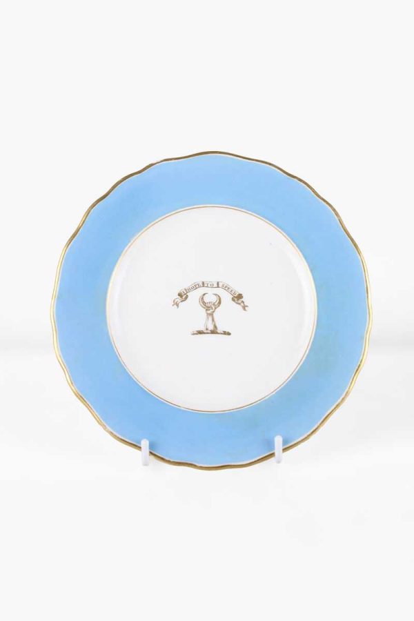 Worcester Plain Blue Border & Gilt Rim Side Plate (Clan Cathcart Crest & Motto)