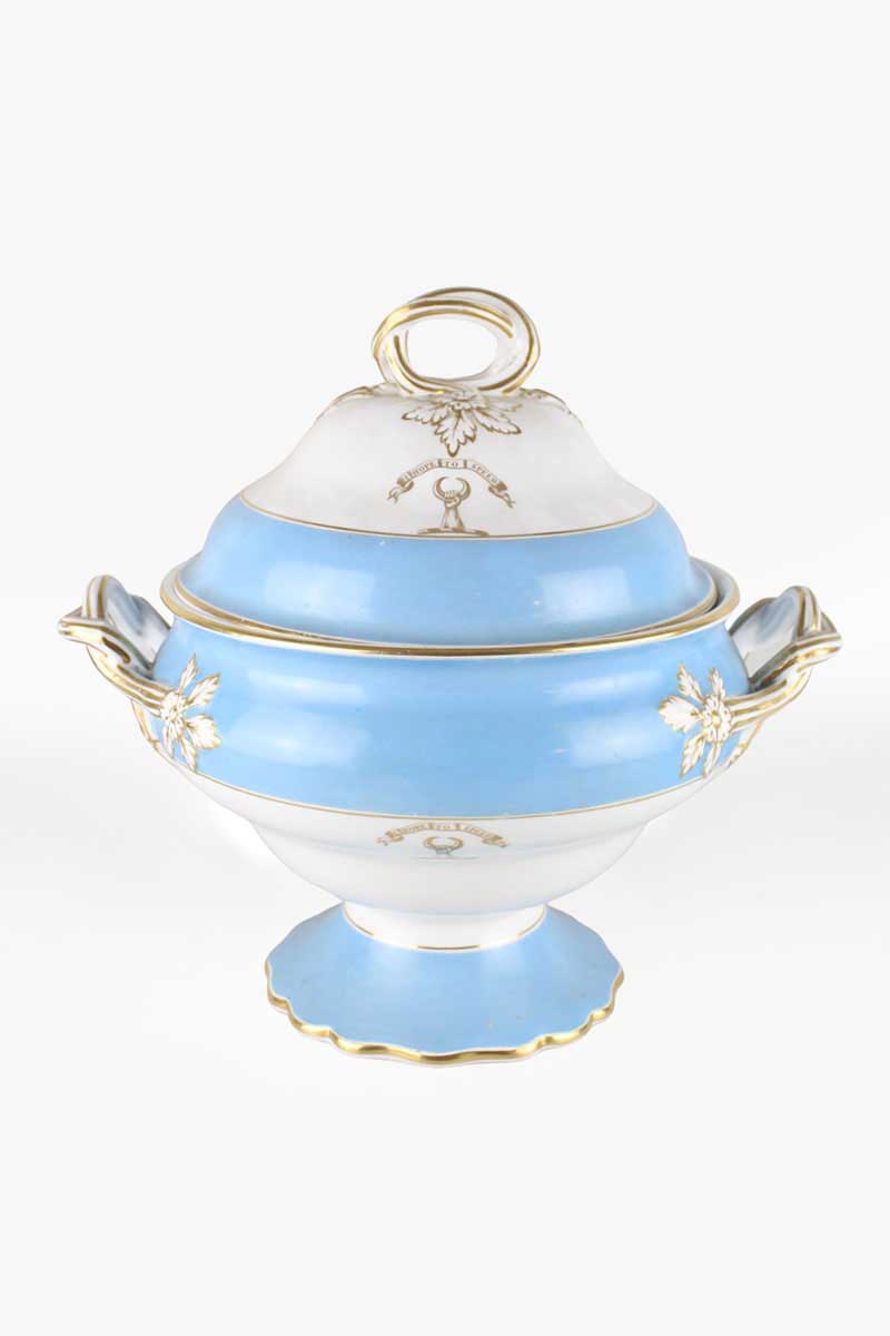 Worcester Plain Blue Border & Gilt Rim Soup Tureen (Clan Cathcart Crest & Motto)