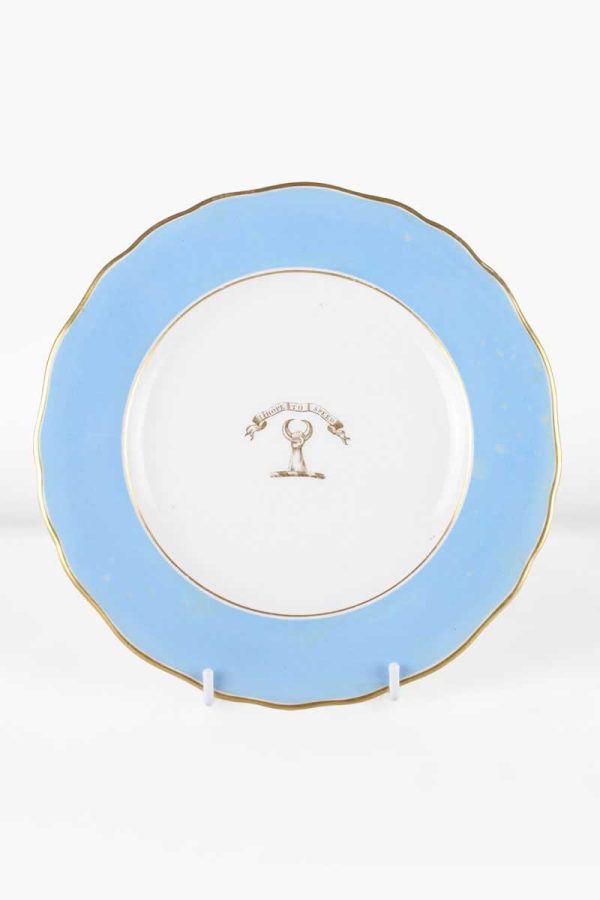 Worcester Plain Blue Border & Gilt Rim Tea Plate (Clan Cathcart Crest & Motto)