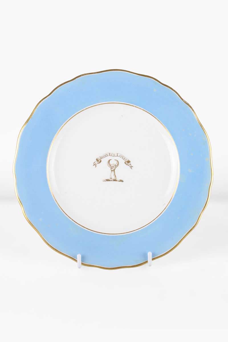 Worcester Plain Blue Border & Gilt Rim Tea Plate (Clan Cathcart Crest & Motto) quantity
